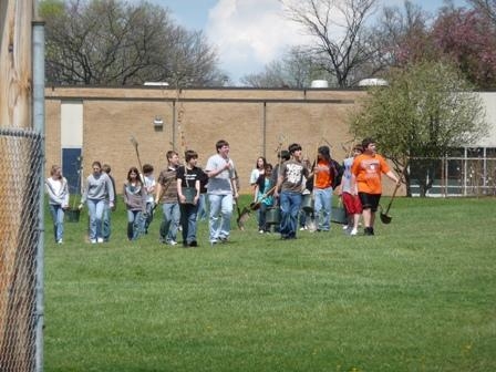 Students of the Green Club at Williamsport High School, with the assistance of the Washington County Soil Conservation District (WCSCD) and Maryland’s Forest Service, sponsored a tree planting in celebration of Earth Day, April 22, 2009. One full day, three half days, over a hundred students, eight faculty members, maintenance staff, six District (WCSCD) employees, and one MD Forest Service employee later, 107 trees were planted on the school property.