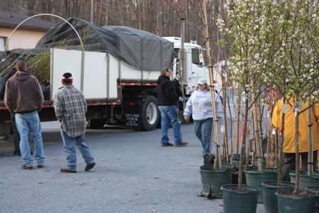 Mr. Breakall of the Washington County Board of Education arranged to have the holes for the trees to be pre-drilled. Teachers volunteered to bring their classes out during each class period and were assigned a specific number of trees to be planted during that time slot.